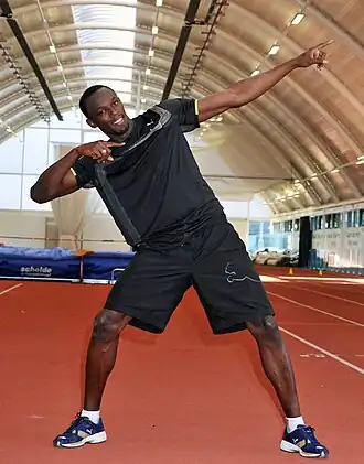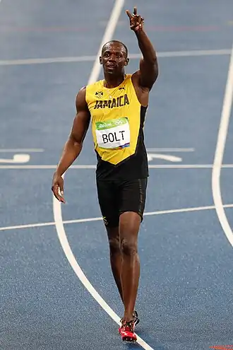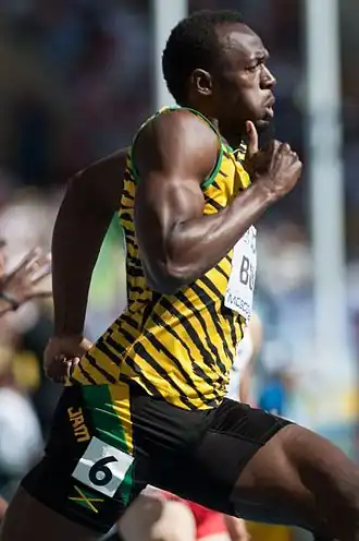 Усэ́йн Сент-Ле́о Болт[6][7] (англ. Usain St. Leo Bolt; род. 21 августа 1986 года, Шервуд-Контент, приход Трелони, Ямайка) — ямайский легкоатлет, специализировался в беге на короткие дистанции, восьмикратный[8] олимпийский чемпион и 11-кратный чемпион мира (рекорд в истории этих соревнований среди мужчин). За время выступлений установил восемь мировых рекордов. На текущий момент — обладатель мировых рекордов в беге на 100 — 9,58 с; и 200 метров — 19,19 с, а также в эстафете 4×100 метров в составе сборной Ямайки — 36,84 с.