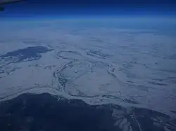 Остров Тарабаров (выше центра фото) и Большой Уссурийский остров (от центра к правому краю фото)