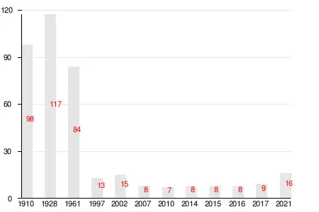 | 1910 | 1997 | 2007[15] | 2010[16] | 2014[17] | 2015[18] | 2016[19] |