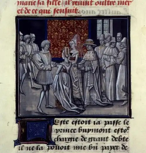 Свадьба Боэмунда I и Констанции Французской. Миниатюра из рукописи «Истории» Гильома Тирского, XV век