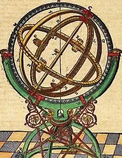 - Армиллярная сфера была ориентирована не на эклиптику, как было принято со времён Птолемея, а на небесный экватор. Для повышения точности Браге сконструировал специальный визир.