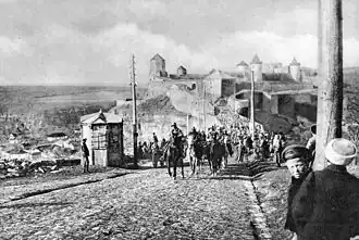 Германские офицеры встречают советскую делегацию во главе с Л. Д. Троцким в Брест-Литовске