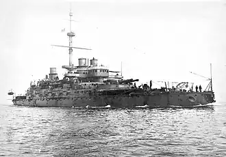 Оборонительное вооружение состояло из 16 легких 6-фунтовых орудий, предназначенных для борьбы с миноносцами, и десяти 47-миллиметровых пулеметов. Кроме того, корабль имел выдающийся таран и пять торпедных аппаратов.