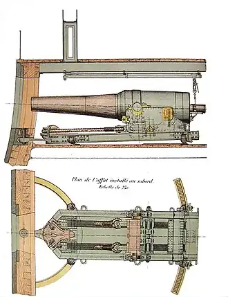 Основное вооружение новых кораблей состояло из восьми 274-миллиметровых 19-калиберных орудий образца 1870 года. Шесть этих мощных пушек, подобно «Ришельё», стояли в батарее, в центре корпуса, а ещё два были установлены на верхней палубе в небронированых барбетах. За счет сильного завала бортов внутрь, вынесенные на спонсонах барбетные установки имели широкие сектора обстрела по носу и корме. Батарейные же орудия могли стрелять только по бортам. Бронепробиваемость орудий соответствовала 360 миллиметрам кованого железа у дула. Дополнительно, в носовой части на полубаке было установлено 240-миллиметровое погонное орудие, призванное усиливать носовой огонь при проведении таранных атак.