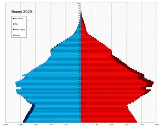 Возрастно-половая пирамида населения Брунея на 2020 год