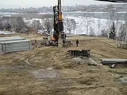 Опоры пролёта развязки — железобетонные с арматурным каркасом. Конструкция включает 30-метровые буронабивные сваи в количестве 77 штук (на каждую опору). Предварительно под каждую такую сваю бурят отверстие — шириной 1,2 м и глубиной 30 м[56].