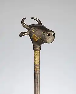 Бронзовые предметы II т. до н. э. из Бактрии — по мнению одних исследователей, представляют собой втульчатые навершия булав, по мнению других — флаконы для благовоний.[28]