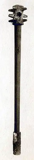 Звёздчатое[28] навершие имеет плоскую форму и радиально расходящиеся шипы.
