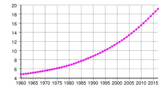 Рост населения в Буркина-Фасо (млн. чел.) с 1960 по 2017 гг.