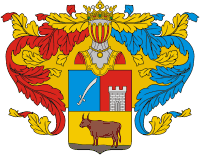 В щите, разделённом надвое, в верхней половине в правом, голубом поле, диагонально положена серебряная сабля, а в левом, красном поле, серебряная башня о трёх зубцах. В нижней половине в золотом поле бык, идущий по земле в правую сторону (изм. польский герб Циолек).