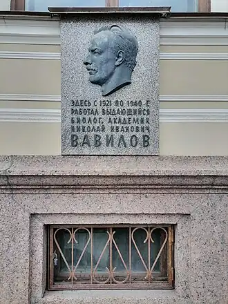 - ↑ Monument to Nikolai Vavilov in Institute of Genetics. Дата обращения: 14 июня 2021. Архивировано 14 июня 2021 года.