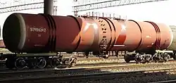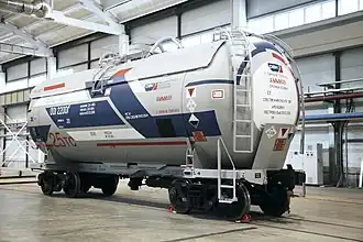 Вагон-цистерна — вид подвижного состава железных дорог для перевозки жидкостей, в том числе: нефти и нефтепродуктов, метилового и этилового спирта, химически активных и агрессивных жидких веществ (кислоты, растворы щелочей, пероксид водорода и др.), сжиженного газа (пропан-бутан, кислород), пищевых продуктов (вода, патока, вино, растительные масла) и др. Вагоны-цистерны используются также для перевозки мелкодисперсных порошков: муки (муковоз), цемента, талька и прочего.