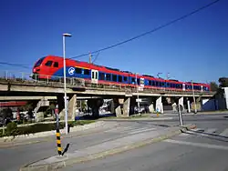 На территории самого города и принадлежащих к общине окрестных населённых пунктов находится восемь железнодорожных станций: Дивци, Валево, Валевски-Градац, Ластра, Младжево, Лукавац, Иверак, Лесковице. За 2013 год ими воспользовалось 108 989 пассажиров, также через них было перевезно 46 911 тонн грузов. В настоящее время план развития железных дорог города заключается в завершении строительства пути Валево—Ужице, а также в модернизации и строительстве второго пути на участке дороги Белград—Бар[4]:76.