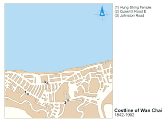 Вдоль Джонстон-роуд тянулись причалы для торговых кораблей и склады для товаров. На месте нынешних Шип-стрит и Макгрегор-стрит работали большие верфи для строительства и ремонта судов. В районе современных Сан-стрит, Мун-стрит и Стар-стрит была сооружена первая электростанция компании Hongkong Electric Company, давшая электроэнергию в 1890 году. В китайских кварталах стали появляться частные школы, в которых дети изучали классическое китайское письмо и конфуцианскую этику[9][10].