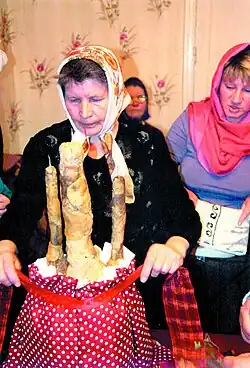Раз в год накануне дня святой Варвары вечером 16 декабря свечу «омолаживают» — прикрепляют новые самодельные свечи к старым — и сменяют «одежду», а потом накрывают праздничный ужин. На следующий день женщины отвозят свечу в церковь для освящения. Вечером односельчанки собираются снова, чтобы чествовать свечу в новом доме. Вместе с иконой святой Варвары и хлебом её ставят в покуть.