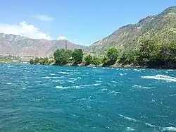 Вахш течёт преимущественно в узкой долине, местами превращающейся в глубокое ущелье; в 170 км от устья выходит в Вахшскую долину, где разбивается на рукава[1], вода которых используется для орошения и водоснабжения.