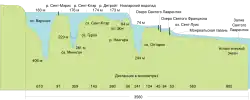 | Максимальная глубина | 406 м[2] | 281 м[2] | 228 м[2] | 7,6 м[17]/ 8[13] м |