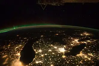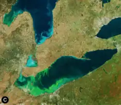 ![]() Великие озёра, вид со спутника (24 апреля 2000 года) | |