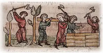Строительство Новгорода ильменскими словенами. Миниатюра из Радзивилловской летописи, конец XV века