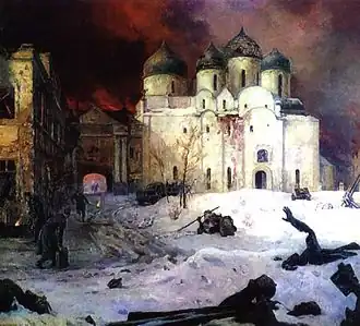 В 1569—1570 годах Новгород подвергся опричному погрому Ивана Грозного, сопровождавшемуся массовыми убийствами горожан. В 1611—1617 годах город был под властью шведов. После основания Санкт-Петербурга город утратил своё экономическое значение, в частности, оставшись в стороне от основных торговых путей. С 1727 года Новгород стал центром Новгородской губернии. С 1927 года стал частью Ленинградской области. Во время Великой Отечественной войны город был занят немцами и почти полностью разрушен. После освобождения вновь стал областным центром, был отстроен заново, многие исторические здания были восстановлены.