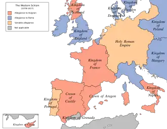 Вели́кий за́падный раско́л (также Па́пский раско́л, или «Вели́кая схи́зма», или «Великий раскол», или «Западный раскол», или «Западная схизма») — раскол в Римской церкви в 1378—1417 годах, когда сразу два (а с 1409 года — три) претендента объявили себя истинными папами. Раскол в церкви произошёл после смерти папы римского Григория XI в 1378 году.