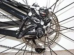Дисковый тормоз представляет собой комбинацию из стального диска, размещенного на втулке велосипедного колеса (как правило, с левой стороны) и устройства, сжимающего этот диск тормозными колодками — калиперами.
