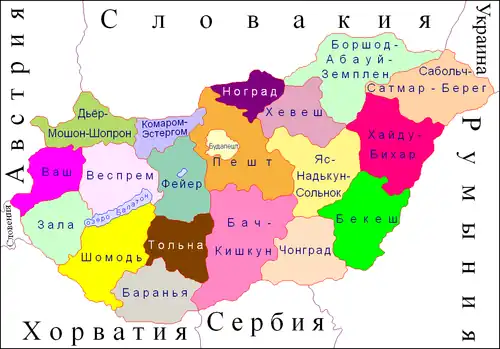 - ↑ Венгрия // Энциклопедический географический словарь / отв. редакторы Е. В. Варавина и др. — М.: Рипол-классик, 2011. — С. 135. — (Словари нового века). — 5000 экз. — ISBN 978-5-386-03063-6.