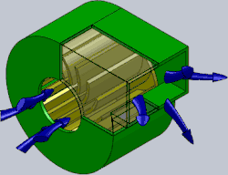 При вращении колеса воздух захватывается лопастями и перемещается в осевом направлении. При этом перемещение воздуха в радиальном направлении практически отсутствует.
