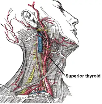 Верхняя щитовидная артерия (a. thyroidea superior) — парная артерия, кровноснабжающая верхний полюс щитовидной железы[1][2] . Отходит от наружной сонной артерии выше её начала, после чего направляется вниз и вперёд к щитовидной железе, где анастомозирует с нижней щитовидной артерией.