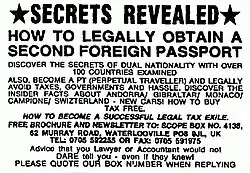 - Паспорт и гражданство — в стране, которая не контролирует совершённые за пределами страны действия (и не облагает их налогом).