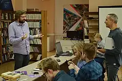 - ↑ Katzner, Ben (1 февраля 2014). SCSU group participates in edit-a-thon for Wikipedia website. St. Cloud Times. Архивировано 5 февраля 2014. Дата обращения: 5 февраля 2014.