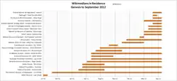 По состоянию на май 2014 года действовало более 30 вики-резидентов, работа большинства из которых оплачивалась либо учреждениями, где они работают, либо региональными организациями Викимедиа.
