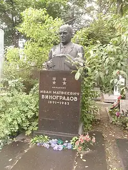 - ↑ Могила И. М. Виноградова на Новодевичьем кладбище. Дата обращения: 2 июня 2012. Архивировано 2 февраля 2014 года.