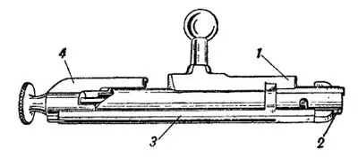 Сзади на пенёк ствола, имеющий резьбу, наглухо навинчена ствольная коробка, которая служит для помещения затвора. К ней, в свою очередь, прикреплены магазинная коробка с подающим механизмом, отсечка-отражатель и спусковой механизм[2].