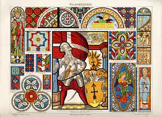 В эпоху Северного Возрождения XVI века в окнах рыцарских замков появлялись расписные витражи с геральдикой владельцев. Получили распространение кабинетные витражи (нем. Kabinett Glasmalerei, в том числе с использованием «лунного стекла» (нем. Glasscheiben). Круглые «лунулы» в свинцовых оправах составляли фон, в центре которого помещали расписные клейма с портретами или гербами владельцев замка[7][8]. Расписные ренессансные витражи воспроизводили композиции популярных гравюр А. Дюрера, М. Раймонди и других художников. Специальные рисунки кабинетных витражей делали немецкие кляйнмайстеры: Г. Альдегревер, Й. Амман, Й. Зильбер, В. Солис, П. Флётнер, а также Х. К. Ланг Старший, Т. Штиммер. В эпоху маньеризма и барокко витражи были вытеснены иллюзорными росписями и скульптурой. Мастера-витрарии пытались подражать живописцам, но в результате уже к концу XVI века витражное искусство потеряло свою оригинальность и в непосильной борьбе с живописью стало выглядеть архаичным.