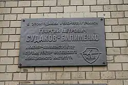 - Судаков-Билименко, Георгий Петрович первый ректор Московского авиационного института, директор Высшего Аэромеханического училища (ВАМУ)