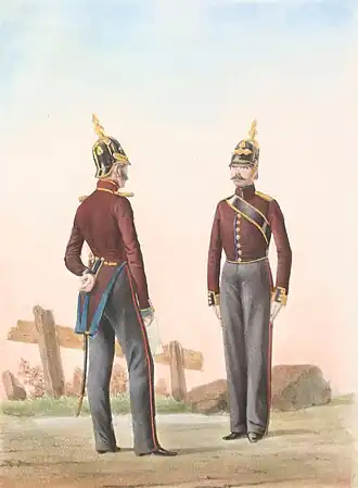 - ↑ Илл. 538. Обер-офицер и Рядовой Внутренних Гарнизонных батальонов. 1844 // Историческое описание одежды и вооружения российских войск, с рисунками, составленное по высочайшему повелению / Под ред. А. В. Висковатова. — Paris: Imp. Lemercier, 1861–1862.