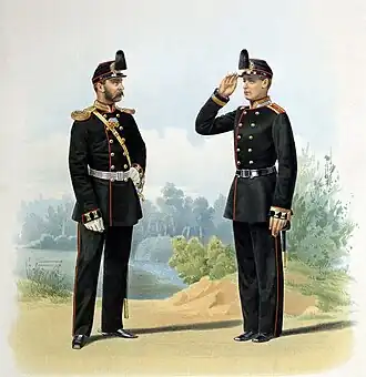 Фельдфебель Николаевского инженерного училища и юнкер Николаевского кавалерийского училища. Юнкер 1-го Павловского военного училища, 1882 г.[4]