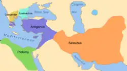 Четвёртая война диадохов происходила между номинальным правителем Македонии Антигоном Одноглазым и его сыном Деметрием Полиоркетом, с одной стороны, и сатрапами Селевком, Птолемеем, Лисимахом и Кассандром, с другой. В этой последней войне все эти диадохи провозгласили себя царями над своей частью империи, которую Александр Великий основал три десятилетия назад. Последняя попытка Антигона и Деметрия воссоединить империю не удалась, потому что они потерпели поражение в заключительной битве при Ипсе, после чего их противники разделили последние остатки Македонской империи.