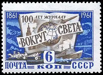 ![]() «Вокруг света» (2011, № 7) — обложка с юбилейным логотипом к 150-летию журнала | |
