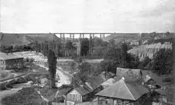 Железнодорожный виадук через Царицу (построен в 1898 г.). Сейчас на этом месте земляная насыпь между Симбирской и Глубокоовражной улицами
