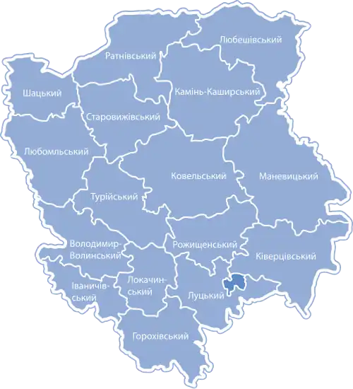 - ↑ Волинська область - Райони. Дата обращения: 16 февраля 2023. Архивировано из оригинала 23 января 2021 года.
