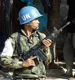 Личный состав вооружённых сил Непала принимает участие в миротворческих операциях ООН (потери Непала во всех операциях ООН с участием страны составили 94 человек погибшими)[4].