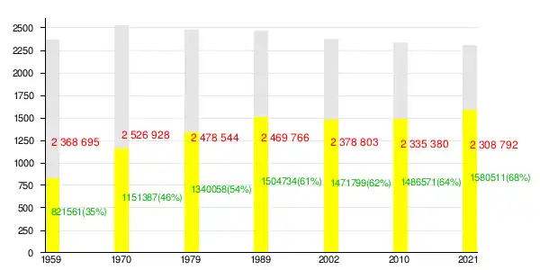 Доля городского населения по данным всесоюзных и всероссийских переписей[13][14][15]: