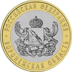 - В 2011 году Центральным банком Российской Федерации была выпущена монета (10 рублей, латунь/мельхиор, анциркулейтед) из серии Российская Федерация с изображением на реверсе герба Воронежской области[65].