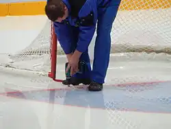 Расстояние между стойками — 1,83 м (6 футов), а расстояние от нижнего края перекладины до поверхности льда — 1,22 м (4 фута). Диаметр перекладины и обеих стоек не более 5 см (2 дюйма).
