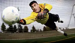 Врата́рь (также голкипер англ. goalkeeper - от goal (цель) и keep (хранить) ) — игрок в футболе, защищающий ворота. Его основная цель — не давать игрокам команды-соперника забить гол. Чаще всего играет вблизи ворот, в т. н. штрафной площади.