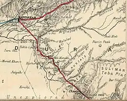 К началу 1879 года две дивизии Кандагарского отряда Дональда Стюарта стояли около Чамана. 1 января они начали марш к Кандагару и три дня шли по необитаемой пустыне двумя параллельными дорогами. 4 января у Мел-Манда два британских авангарда столкнулись с афганским отрядом и, после небольшой перестрелки, отбросили их назад к Кандагару. Это небольшое столкновение стало единственный боем на пути к Кандагару. Британцы потеряли несколько человек ранеными, афганцы — около ста убитыми и ранеными[48].