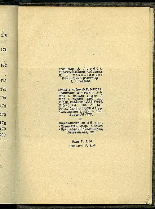 По традиции (не регламентирован современным ГОСТом) после надвыпускных и перед выпускными данными приводят список лиц, принимавших участие в создании книги.