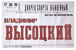Влади́мир Семёнович Высо́цкий (25 января 1938, Москва — 25 июля 1980, там же) — советский поэт, актёр театра и кино, автор-исполнитель песен (бард), прозаик, сценарист; заслуженный артист РСФСР (1986, посмертно), лауреат Государственной премии СССР («за создание образа Жеглова в телевизионном художественном фильме „Место встречи изменить нельзя“ и авторское исполнение песен», 1987, посмертно).